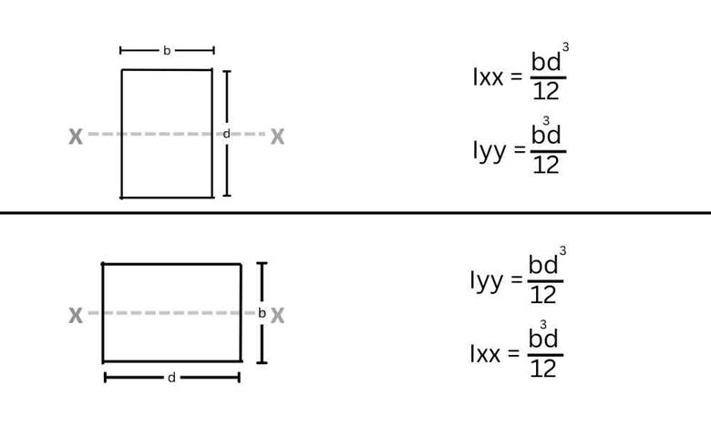 I_{\text{xx}} = \frac{b\, d^3}{12}