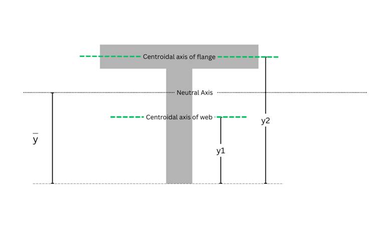 y1 is the location of the centroidal axis of the web from the bottom, and y2 is the location of the centroidal axis of the flange from the bottom. This can be seen in Figure 8. Andis the location of the neutral axis is from the bottom.