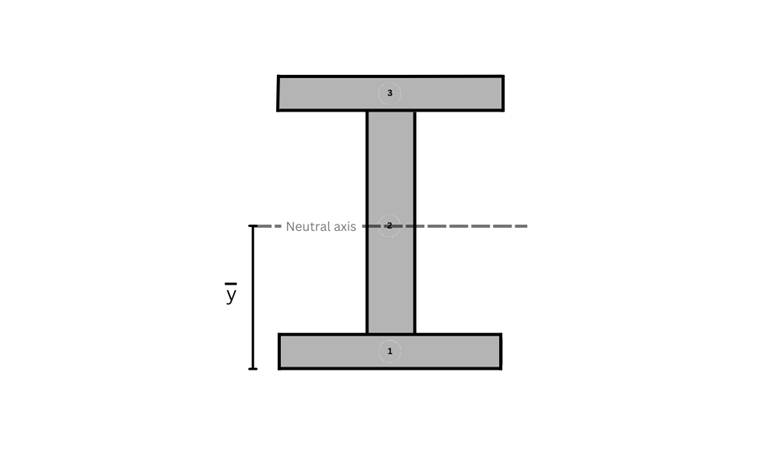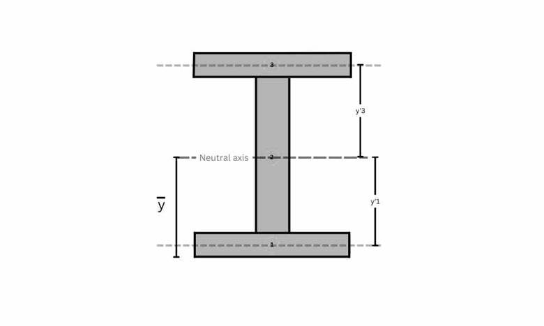 - After finding the area moment of inertia of all areas, such as flange and web, on the section’s neutral axis, we need to add all moments of inertia to get the final moment of inertia of the section.