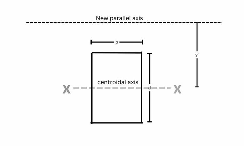 $$ - Now, see the distance between the centroidal axis and the new parallel axis; here, this distance is “y’ ”.