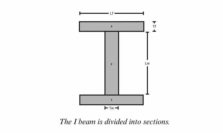 Figure 10 The I beam is divided into sections 1, 2, and 3.