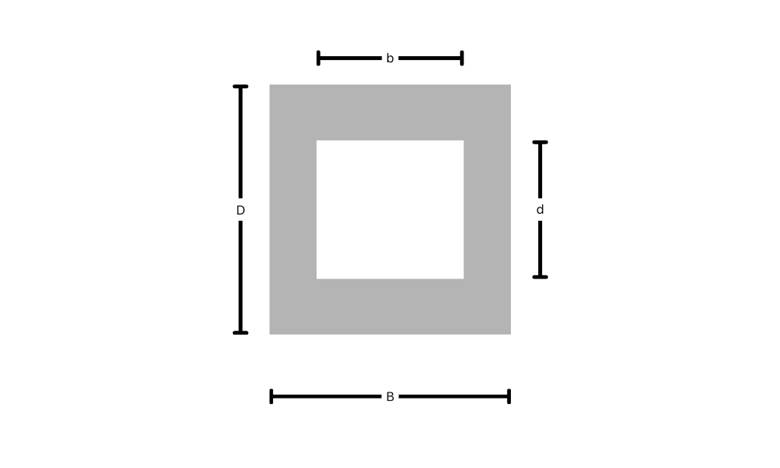 I_{xx} = \frac{B\, D^3}{12} – \frac{b\, d^3}{12}